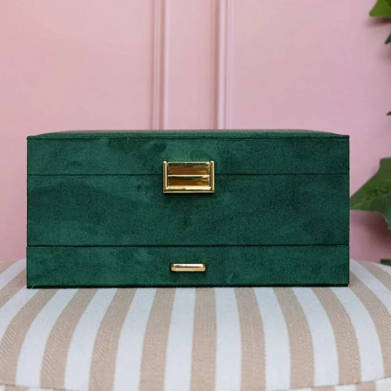 Organisez et protégez vos bijoux préférés, grâce à la Boîte à Bijoux Denise Velours Vert de Maison Scarlett !