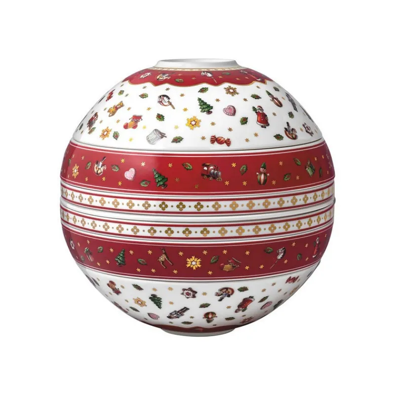 En porcelaine haut de gamme, La Boule Toy’s Delight se compose de 7 pièces : deux plats creux, deux coupes plates et deux assiettes universelles ainsi qu’un plat de service. Toutes ces pièces se combinent selon vos envies et viendront compléter avec enchantement vos tables de Noël.