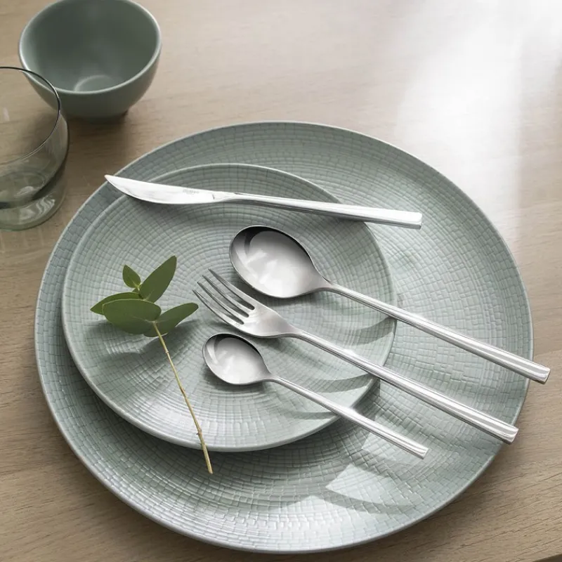 L’assiette de présentation Modulo Nature, en grès avec un subtil relief, se pare d’un ton délicat et raffiné, le coloris Jade. Pour une table naturelle et élégante.