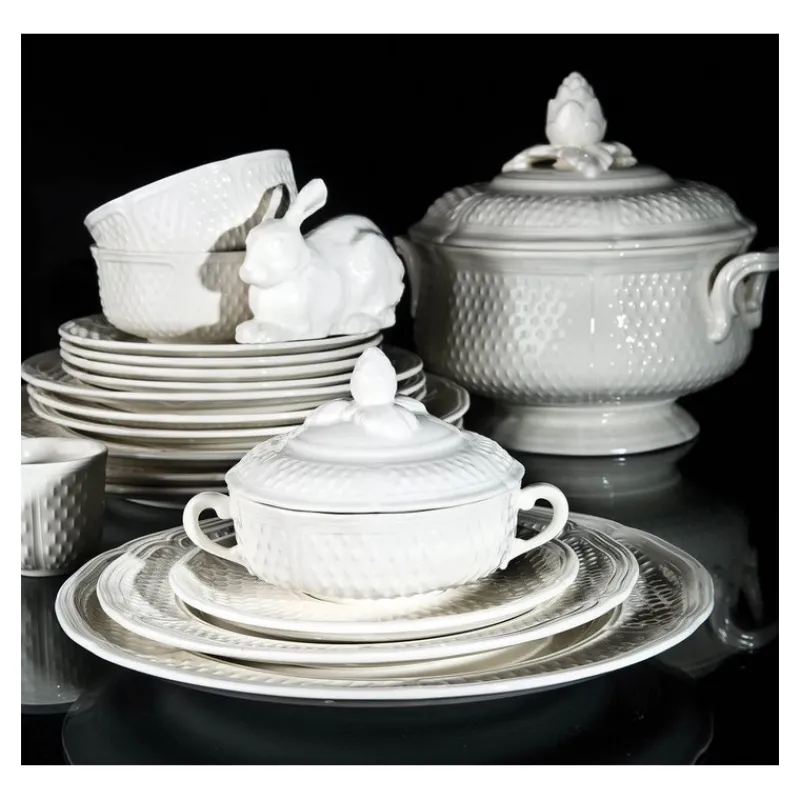 Ce grand classique du 18ème siècle se marie volontiers avec les services décorés ou en intégralité pour une table entièrement unie. Cette collection classique Pont Aux Choux raconte l’histoire des maraîchers parisiens qui cultivaient leurs légumes près des ponts de Paris.