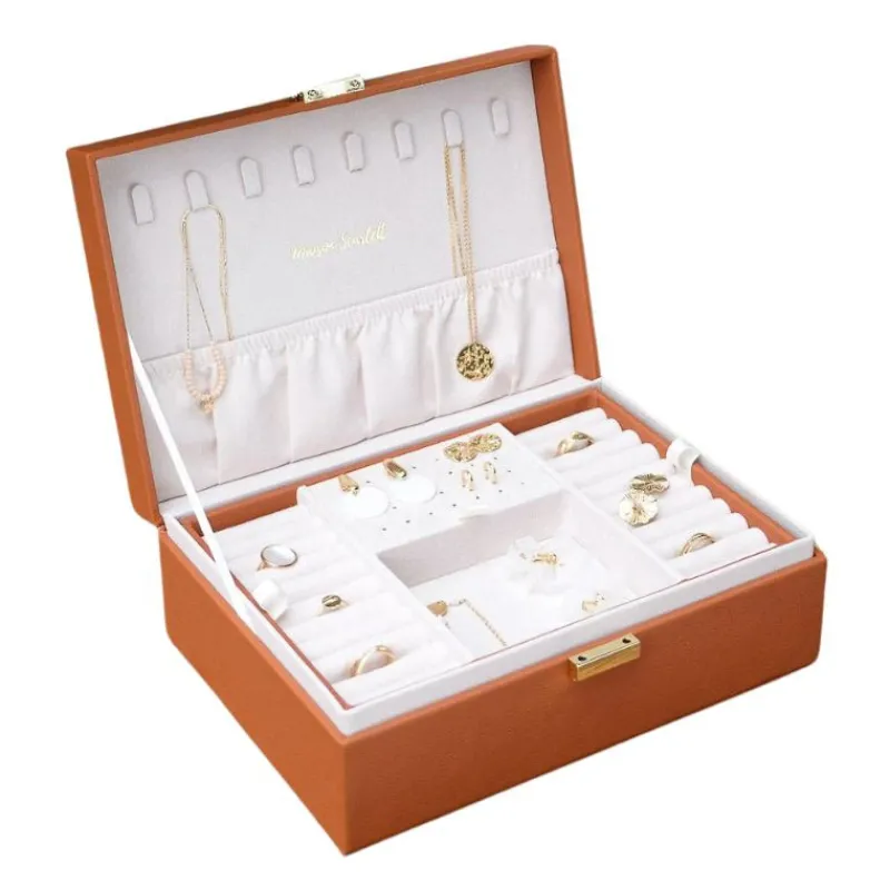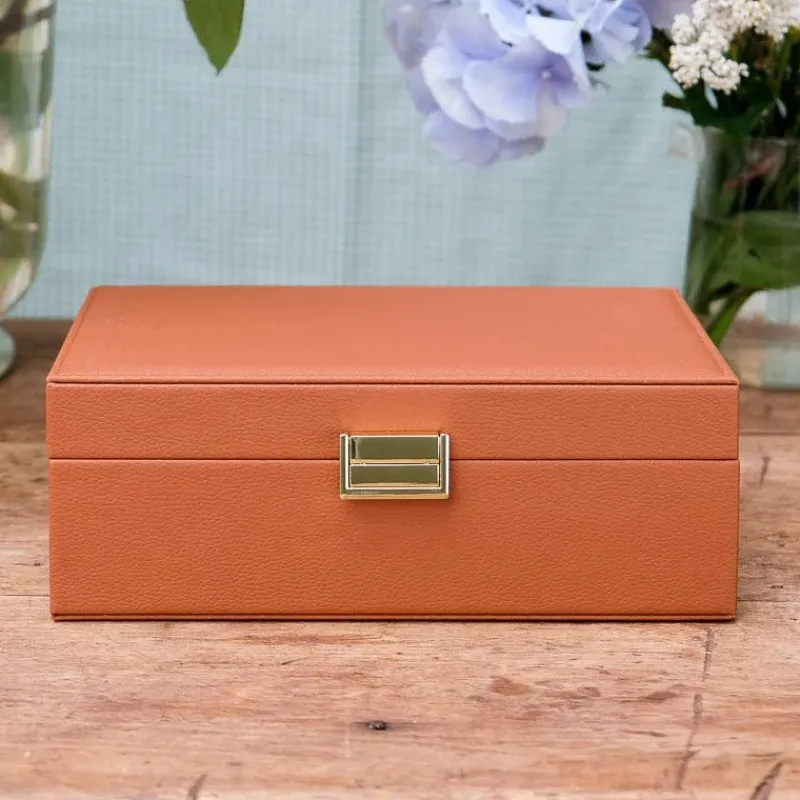 Cette Boîte à Bijoux Louise Cuir Camel de Maison Scarlett sera idéale pour ranger vos bijoux dans une même boîte.