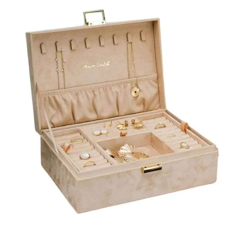 Cette Boîte à Bijoux Louise Velours Beige de Maison Scarlett vous permettra de ranger avec élégance, vos différents bijoux.
