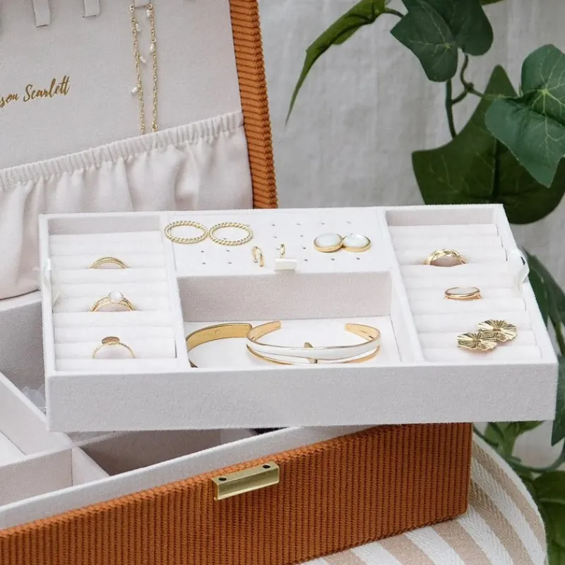 Grâce à cette Boîte à Bijoux Louise Velours Côtelé Camel de Maison Scarlett, vos bijoux seront rangés en toute sécurité.