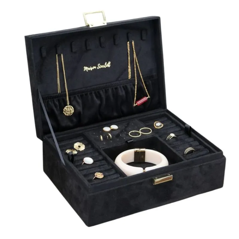 Cette Boîte à Bijoux Louise Velours Noir de Maison Scarlett vous permettra de ranger avec élégance, vos différents bijoux.