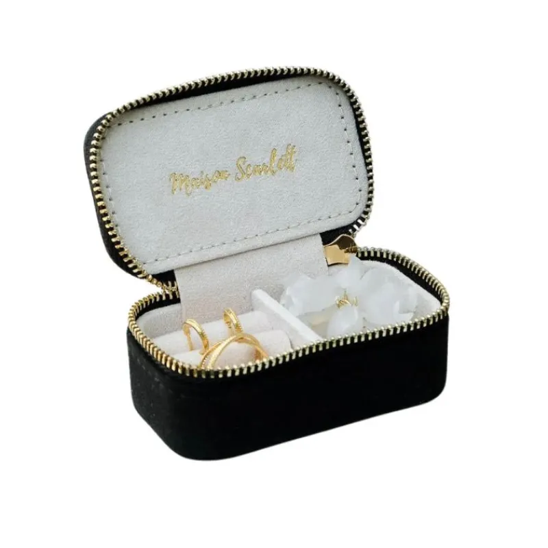 Cette Mini Boîte à Bijoux de Voyage Marie Velours Noir de Maison Scarlett sera parfaitement adaptée pour emporter quelques bijoux lors de vos voyages.