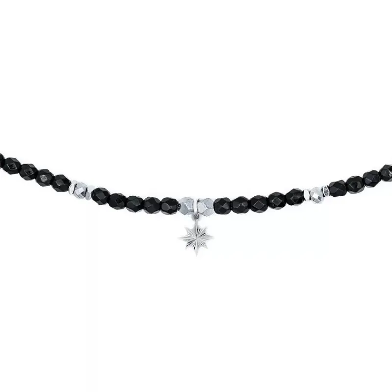 Ce bijou est composé de perles de bohème et d’hématite assemblées sur un lien résistant. Pour finir en beauté ce bijou, un pendentif étoile lumineux en argent 925 est ajouté au centre des perles, ce qui ajoute une élégance supplémentaire. L’association de ces couleurs noir et silver sera idéale pour sublimer vos tenues, qu’elles soient de tous les jours ou festives.