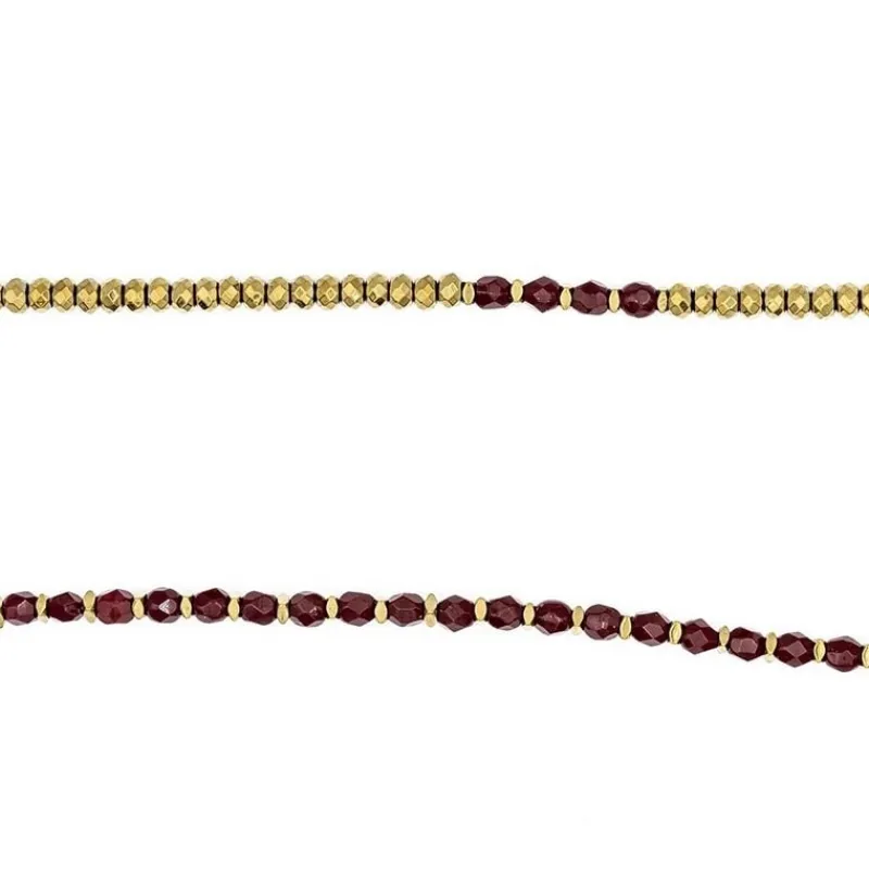 Ce bijou rouge cerise est un véritable accessoire intemporel, qui va venir apporter une touche de couleur vibrante à votre tenue. Cette élégante couleur est un symbole de passion, de force et de vitalité qui ne passera pas inaperçu, lorsque vous porterez ce bijou. Pour rendre ce bijou encore plus tendance et chic, les perles de Bohème rouge cerise sont associées à de l’Hématite gold.