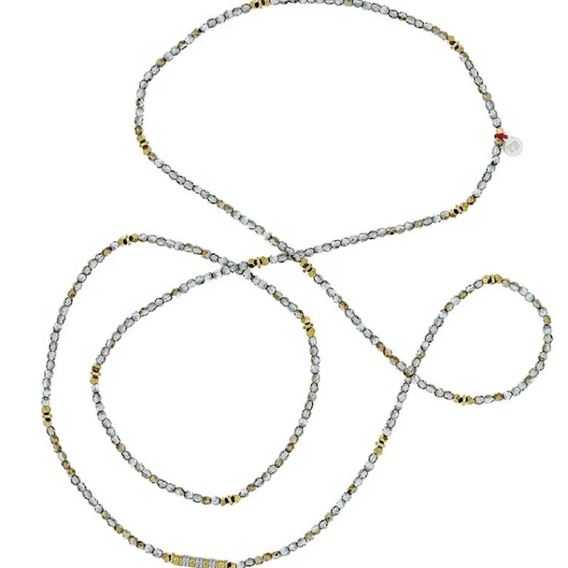 Ce bijou est assemblé sur un lien en silicone très résistant qui permet de pouvoir le manipuler comme vous souhaitez. Vous pourrez l’utiliser en tant que bracelet avec 6 tours ou en tant que collier. L’avantage de ce bijou 2 en 1 est que vous pourrez varier son utilisation selon vos besoins pour accessoiriser votre tenue. Sa longueur de 103 cm permet d’avoir un collier qui descendra jusqu’au niveau de la poitrine, ce qui est idéal pour les haut en col V notamment.