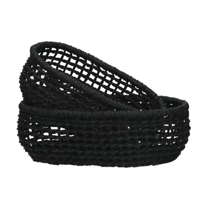Tressée en papier, la collection de corbeilles ovales Osteria Noir de Pomax est surprenante. Le papier est un matériau très polyvalent : il est léger, facile à travailler, il se colore facilement et est biodégradable.