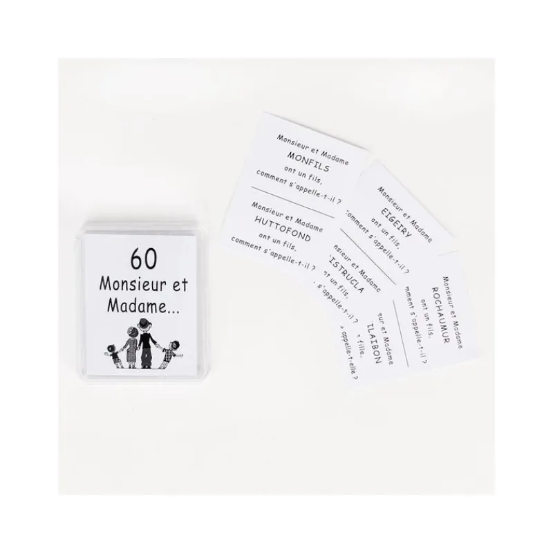 Grand classique des jeux de l’enfance, les devinettes Monsieur et Madame ont toujours un énorme succès. Il n’est pas toujours aisé de se rappeler plus de 2 ou 3 devinettes, c’est pourquoi Marc Vidal a compilé 60 Monsieur et Madame dans un petit coffret à offrir ou à s’offrir.