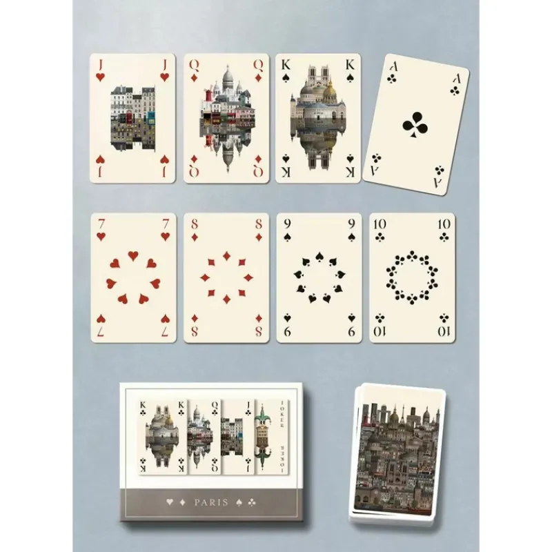 Martin Schwartz nous propose désormais une collection de cartes à jouer toujours sur le thème des grandes villes du Monde ! Découvrez ici 2 jeux de 52 cartes à jouer qui mettent en scène la ville Lumière au fil des 5cartes.