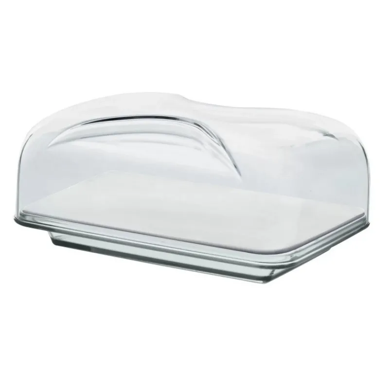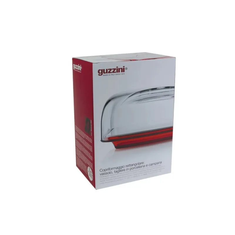 De forme rectangulaire, le plat à fromage Gocce dispose d’une plaque en porcelaine, idéale pour une utilisation au quotidien. La porcelaine étant un matériau hygiénique, vous êtes assurés de toujours avoir une plaque parfaitement propre. Le plateau et la cloche de ce plat sont en SAN, un acrylique de très grande qualité. Compatible lave-vaisselle, il est toutefois recommandé d’effectuer un nettoyage à la main des parties en acrylique afin de conserver un éclat durable à l’ensemble.