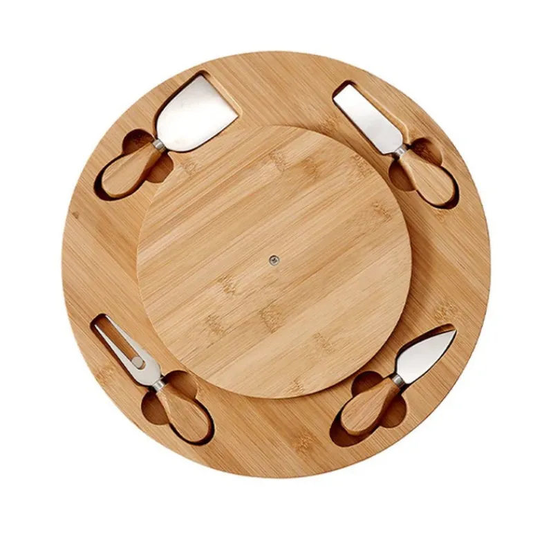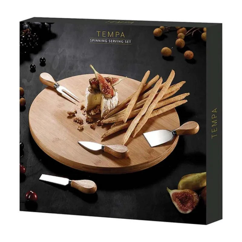 Amateurs de fromage, Ladelle a imaginé pour vous ce plateau convivial. En bambou, le plateau à fromage tournant Tempa est équipé de quatre ustensiles pour le service.