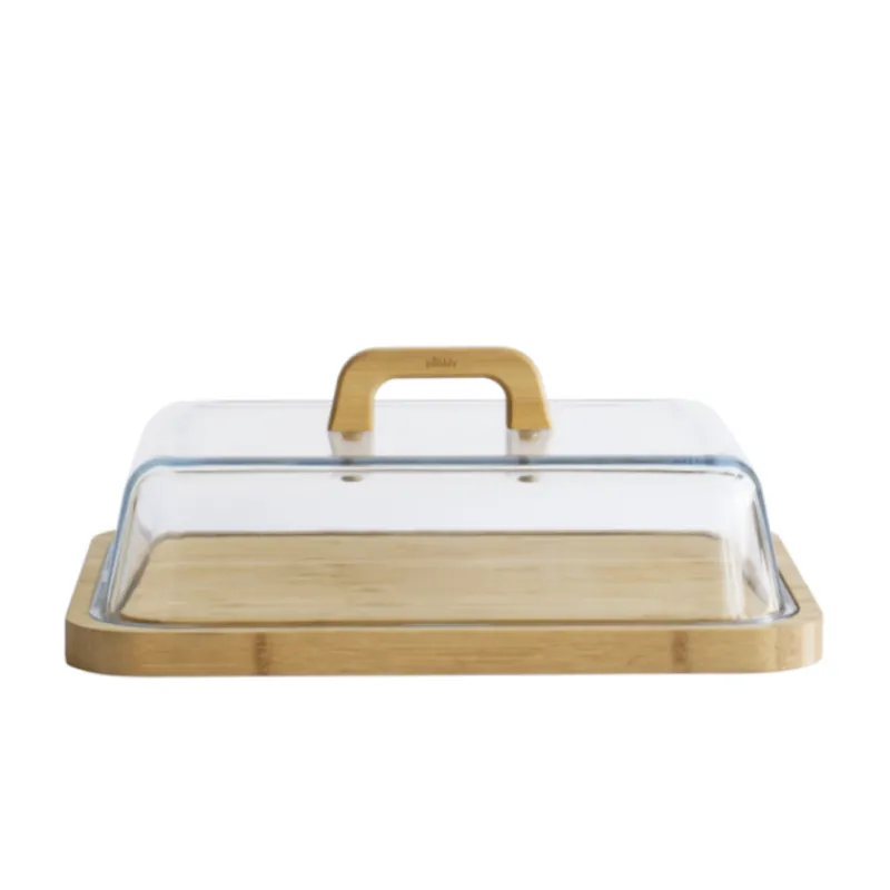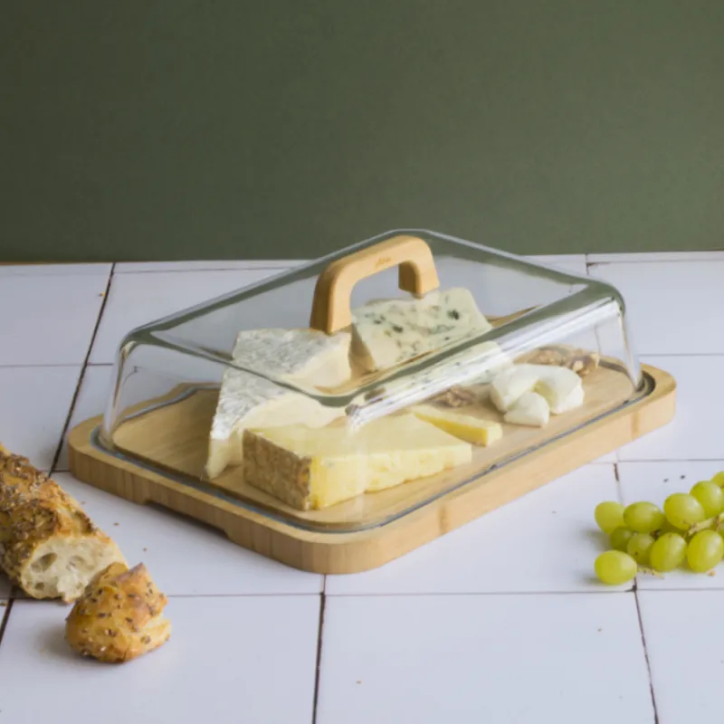 Élégant plateau à fromage en bambou avec sa cloche en verre par Pebbly.