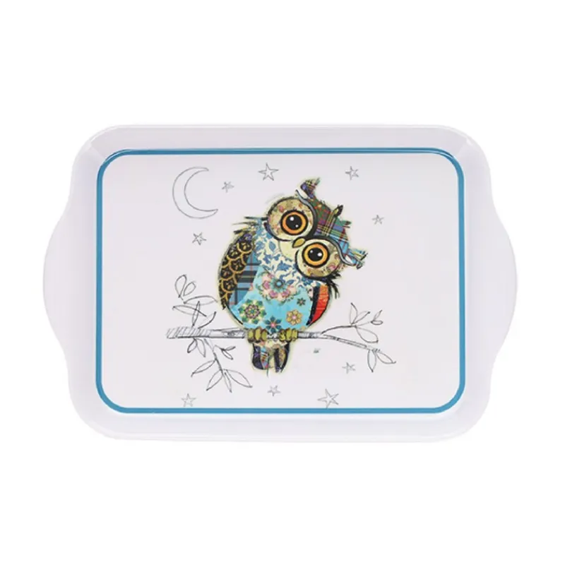 Ce plateau en mélamine Kook Chouette de Kiub fera sensation chez les petits comme chez les grands.