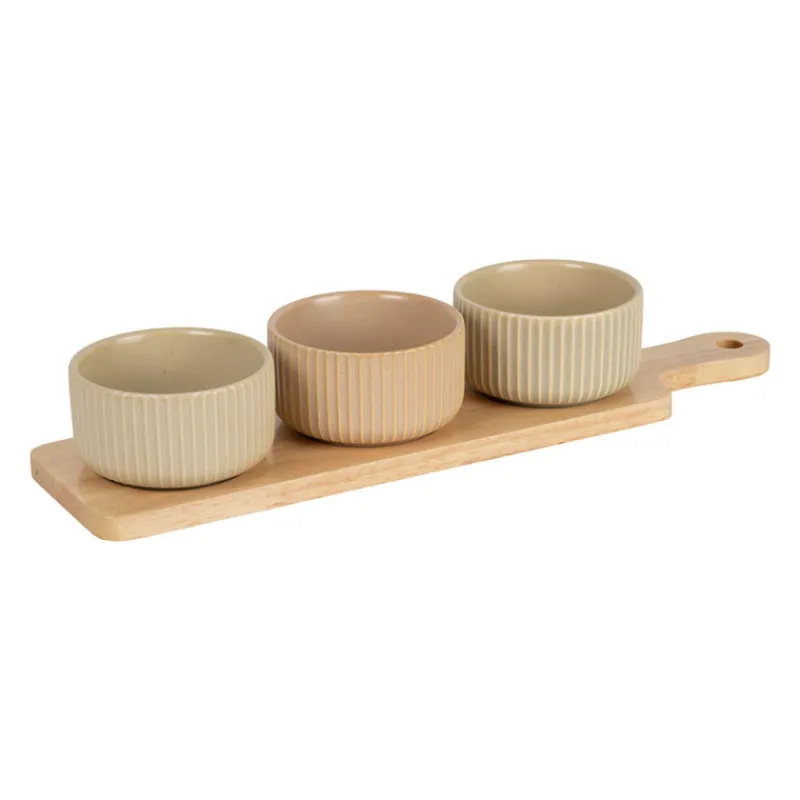 Apporter une touche élégante et chaleureuse à vos moments de convivialité, grâce à ce service apéritif, qui vous permettra de réaliser de belles présentations. Les trois coupelles vous permettront de présenter des petites sauces, des tapenades ou des petites collations.