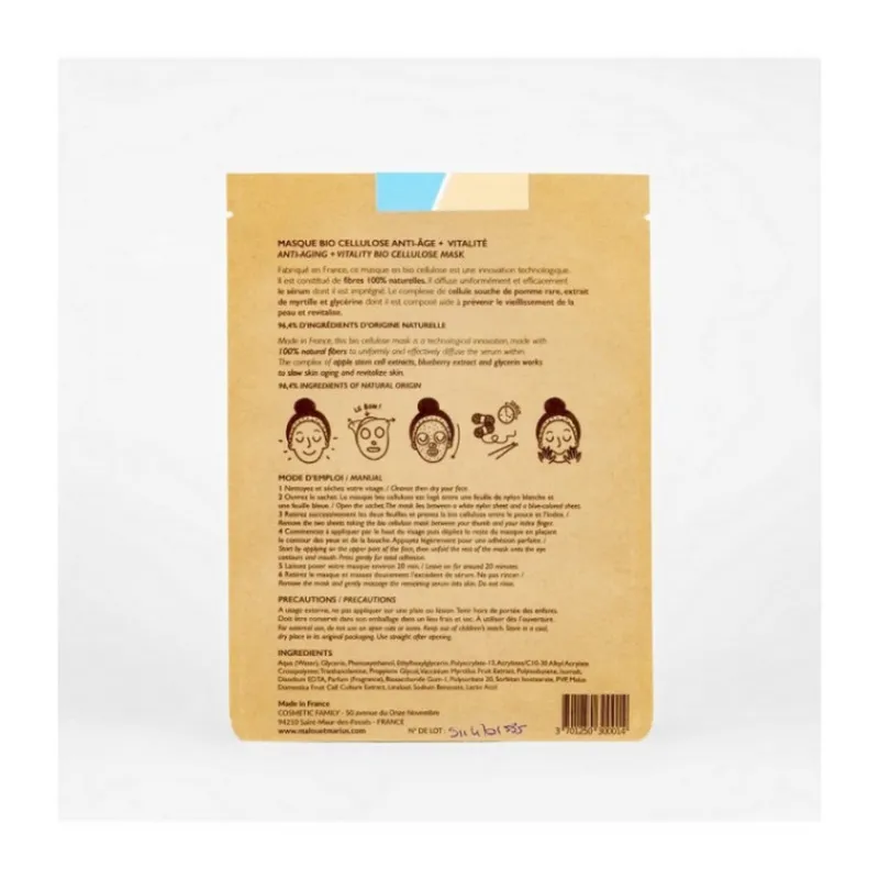 Fabriqué en France, ce masque en bio cellulose est une innovation technologique. Le soin anti-âge et vitalité de Malou & Marius.