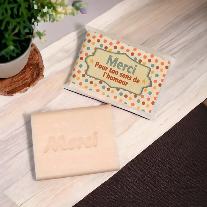 Offrez une petite attention à vos proches, grâce à cette Savonnette de Remerciement Pour ton Sens de l’Humour de Mas du Roseau.