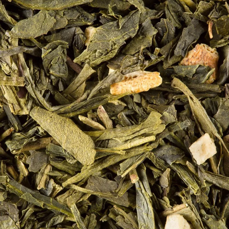 Thé vert de Chine parfumé à l’huile essentielle d’orange sanguine, aux arômes vanille et épices, que des écorces d’orange et des morceaux de pomme complètent pour offrir, tel un cadeau, un moment de dégustation unique.