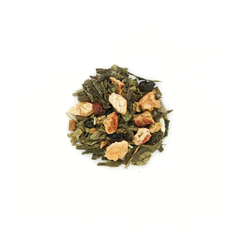 - Ingrédients : Thé vert Sencha*, pomme*, fenouil*, arôme naturel de poire, poire*, baies de sureau*, arôme naturel d’ylang ylang (* Ingrédient issu de l’agriculture biologique / FR-BIO-01 / Agriculture UE/non UE)