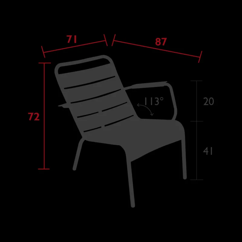 C’est dans les années 20 qu’il fait sa première apparition dans les allées du célèbre jardin dont il porte le nom, tout droit sorti des ateliers de la ville de Paris qui en assurent les premières fabrications, qui seront ensuite reprises par un atelier artisanal antérieur à Fermob. Dans les années 90, Fermob, à la demande du jardin du Luxembourg, en reprend la fabrication. Aujourd’hui, le fauteuil bas Luxembourg n’en finit plus de séduire : léger, il se déplace facilement d’un bout à l’autre du jardin…malin, il s’accessoirise d’un repose tête et de tables basses pour créer un coin lounge… pratique, il s’empile parfaitement pour un rangement facilité.