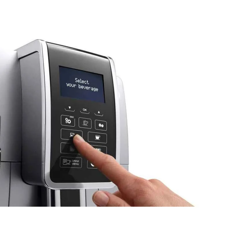 Avec ses courbes arrondies et son volume compact, votre robot café Dinamica FEB3535.SB trouvera aisément sa place dans votre cuisine grâce à sa conception : un bac à eau qui se retire par l’avant et le broyeur à café qui se remplit par le dessus. Sa façade avant en plastique ABS couleur argent mat ne laissera aucune trace de doigts et la performance sera toujours au rendez-vous avec simplicité grâce à l’interaction intégrée à ce modèle.