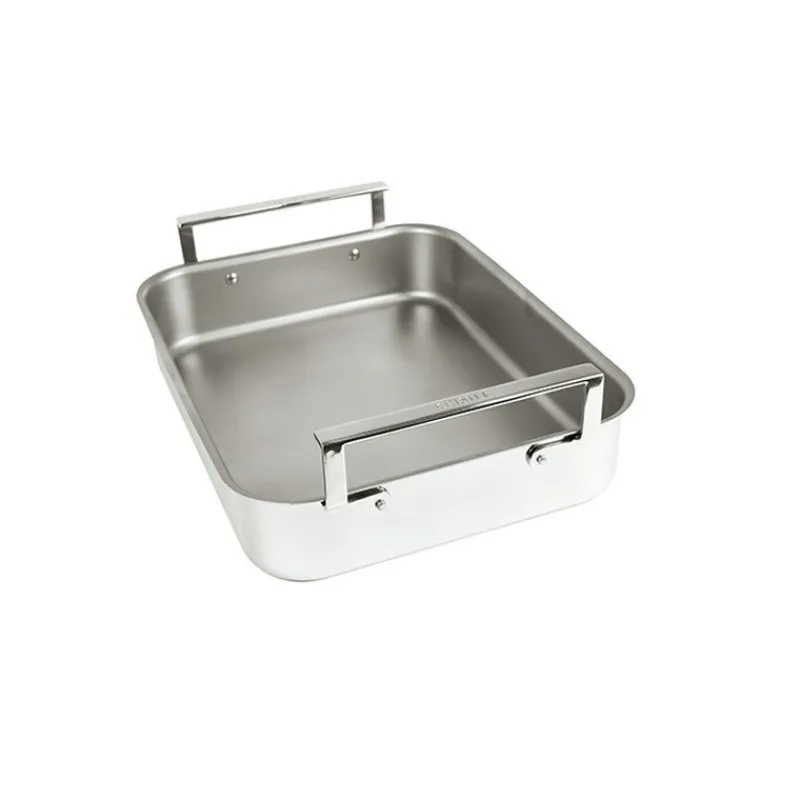 Le rôti du samedi ou le poulet du dimanche ont trouvé leur plat à four grâce à ce modèle en trilaminé inox/aluminium/inox de la marque Cristel.