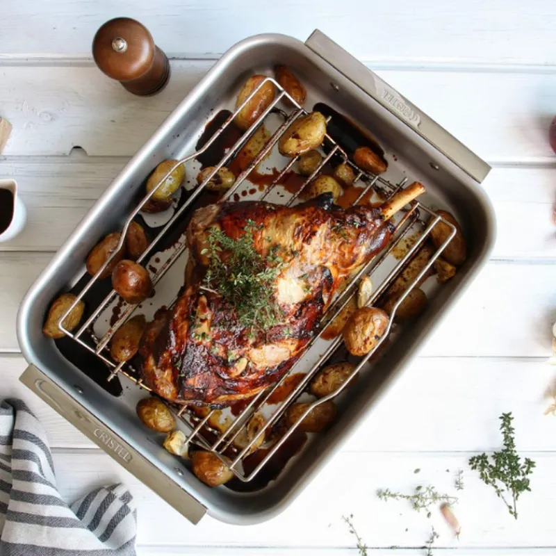 Pour vos poulets du dimanche, Gigot d’agneau ou encore poisson au four, le plat à four en inox de Cristel est idéal.