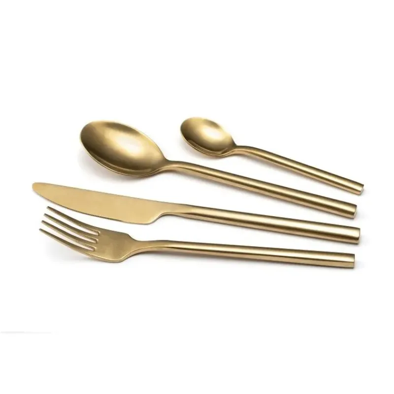 Votre table brillera de mille feux avec la ménagère Square Doré de la collection Vintage Améfa ! Coffret de 16 pièces.