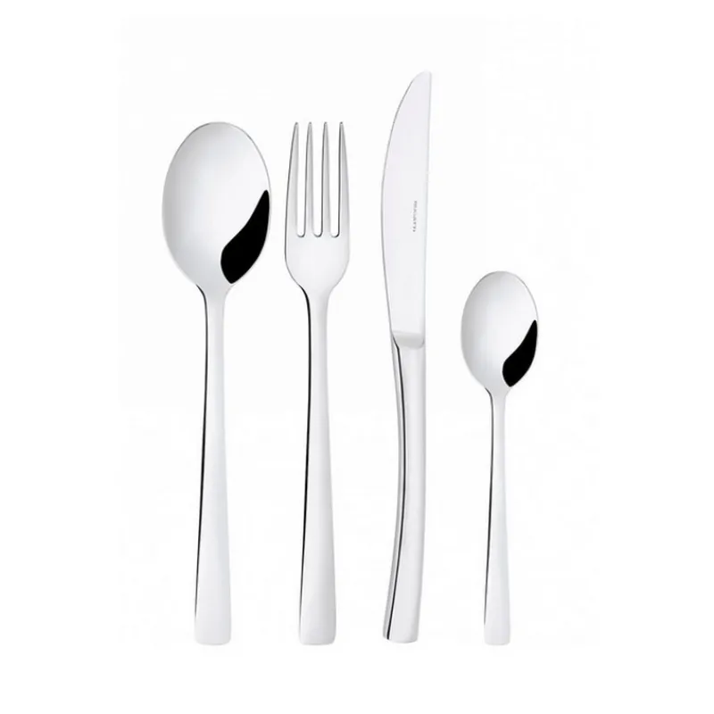 La ménagère 24 pièces Tendence permet de dresser une table de 6 personnes. Présentée en boîte fenêtre, vous aurez également plaisir à l’offrir. La ligne des couverts Tendence s’adaptera aussi bien avec un service de table classique que contemporain. Que vos assiettes soient en porcelaine, en grès, colorées ou unies, la ménagère Tendence les sublimera et apportera une touche brillante à votre table.