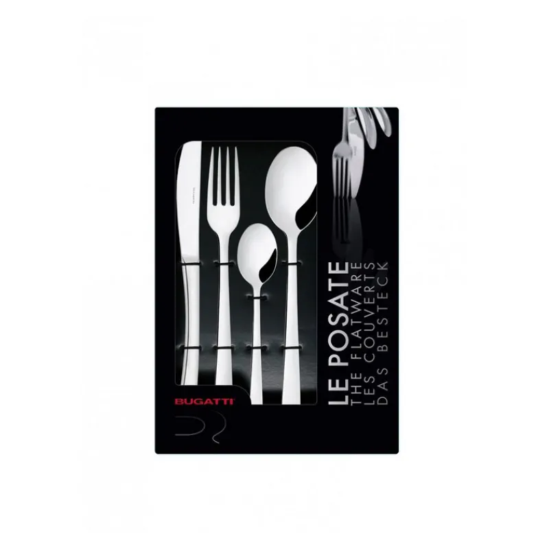 Sobre et épurée, la ménagère Tendence de Bugatti est idéale pour vos tables quotidiennes comme les plus festives.