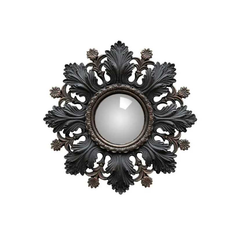 Le miroir convexe Feuilles Noires et Fleurs de Chehoma sera d’une élégance parfaite sur votre mur. Le détail des feuilles et des fleurs est rendu possible grâce à la résine utilisée pour la fabrication de ce miroir.