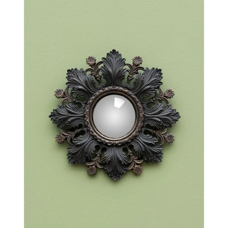 De forme ronde et légèrement bombée, le miroir convexe de Chehoma habillera votre mur avec la grâce de ses feuilles et ses fleurs noires.