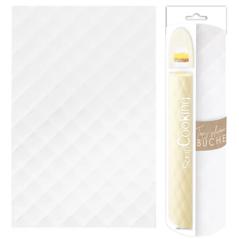 Un effet « Waouh » garanti au moment du service avec cette bûche maison tellement surprenante. Fabriqué à partir de silicone 100% platinum de couleur blanc, ce tapis est doté d’un motif en relief matelassé qui donnera un aspect professionnel à vos bûches. Ce que l’on apprécie particulièrement, c’est sa polyvalence. En effet, avec sa texture en silicone, il peut être utilisé pour une grande variétés de préparations : Mousses, crèmes, ganaches. Vous n’êtes pas limité à un type de bûche ! Pratique, il est simple d’utilisation, facile à nettoyer et assure un démoulage impeccable de vos réalisations.