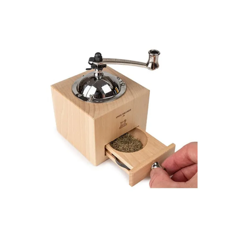 Son réceptacle tout en rondeur creusé directement dans le bois du tiroir permet de récupérer aisément la fraiche de la mouture. L’avantage de ce réservoir est que vous pouvez facilement le vider afin de moudre successivement différentes variétés de poivres, selon vos besoins pour la préparation de vos plats.