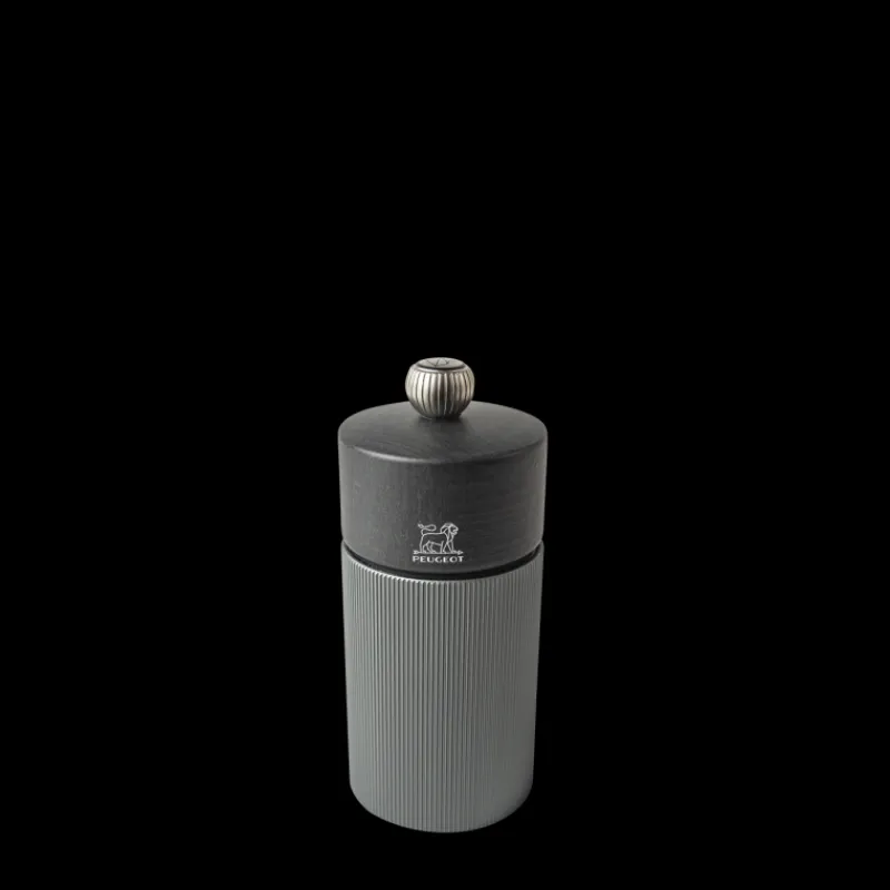 Une tête en bois naturel et un corps en aluminium strié sont les matériaux sélectionnés pour ce magnifique moulin à poivre Line Carbone de Peugeot.