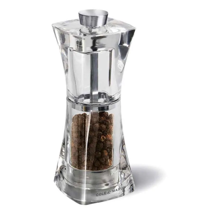 Tout en transparence et légèreté, ces moulins en acrylique naviguent avec aisance de la cuisine à la table. Pour vous offrir une dégustation optimale, ils sont équipés d’un ingénieux système qui permet d’ajuster la mouture de fine à grossière en resserrant ou desserrant la vis située sur le dessus du couvercle.