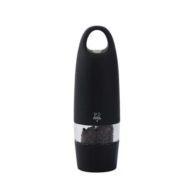 Le moulin Zest noir de Peugeot est un moulin électrique au toucher soft pourvu d’un anneau qui vous permet de le transporter facilement de la cuisine à la table. Très ergonomique, vous pouvez le tenir dans une main et continuer à cuisiner de l’autre.