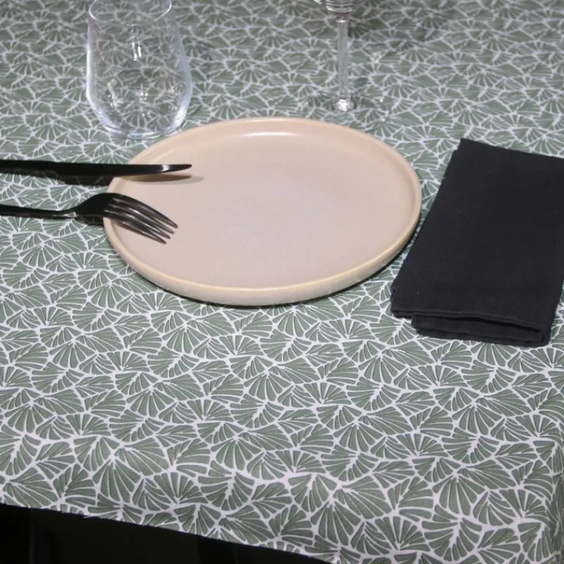 Cette Nappe enduite Oil Green Antibes de Sud Etoffe vous permettra de protéger votre table de jardin ou de salle à manger.