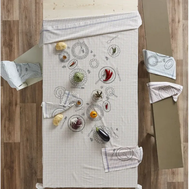 Il y a toujours une folle énergie au moment de réunir sa tribu pour le repas. C’est le moment de se retrouver, de rire mais aussi de se chamailler. Sylvie Thiriez nous propose ici un linge de table qui célèbre avec malice votre quotidien. Le carreau est inspiré des torchons traditionnels.