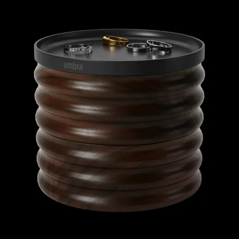 La boîte à bijoux Tesora est à la fois décorative et fonctionnelle. Elle se compose de deux niveaux qui peuvent être empilés ou séparés. Umbra propose cette jolie boîte à bijoux en deux finitions, Noir et Naturel.