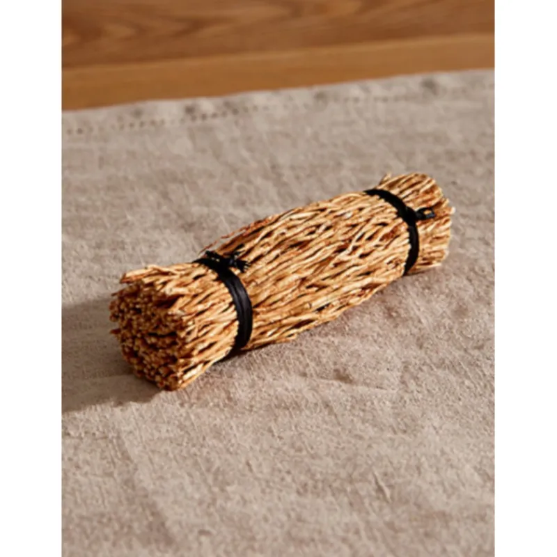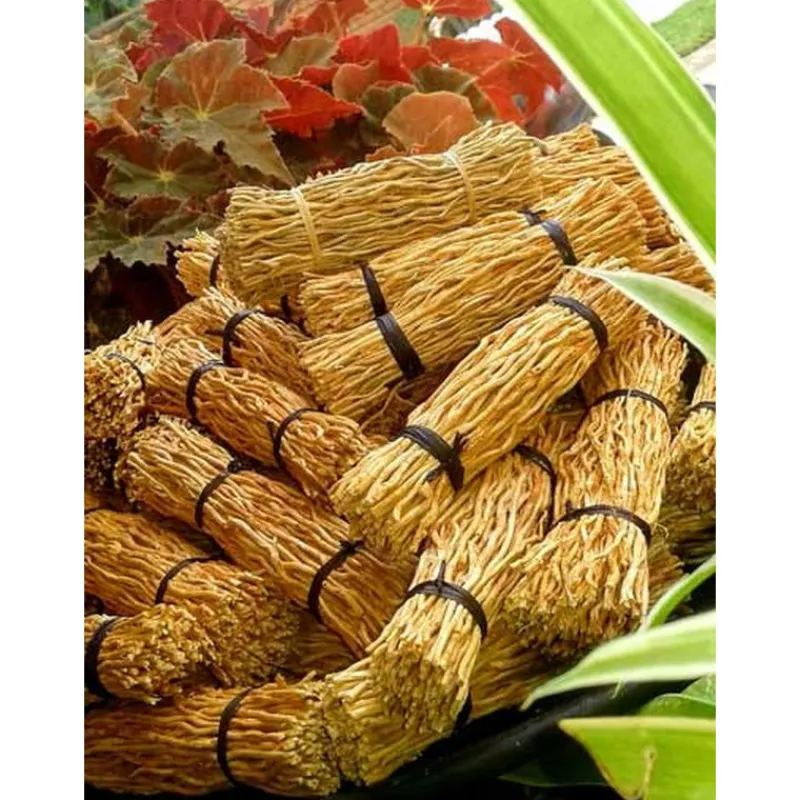 Dans son milieu naturel, le vétiver se présente sous forme de grandes touffes vertes, dont la racine se développe verticalement. Non toxique et sans aucun produit nocif, la racine de vétiver est le produit par excellence pour purifier votre maison. Une fois séchée, la racine est travaillée en joli bouquet et fagotin pour agrémenter votre intérieur.