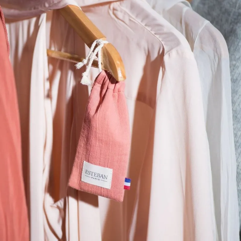 Emportez votre parfum d’intérieur avec vous grâce à la pochette à parfum Iris Cachemire Esteban. Confectionnée en gaze de coton, elle se glisse facilement dans votre sac à main ou votre sac de sport. Elégante et discrète, elle se suspend à un cintre dans votre dressing grâce à sa cordelette.