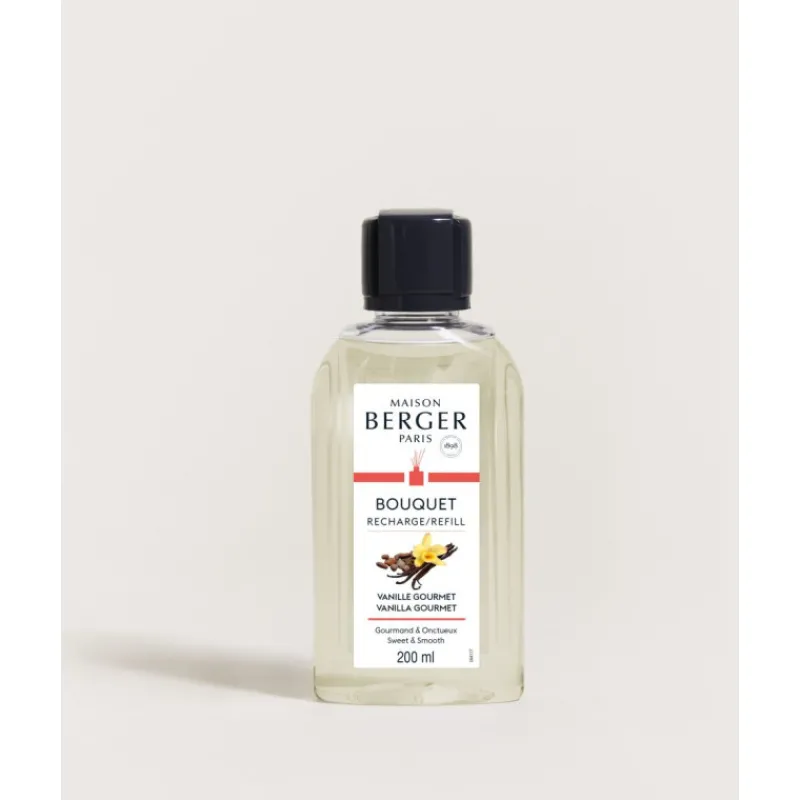 Avis aux gourmands ! Le parfum Vanille Gourmet est fait pour vous. Retrouvez toute l’onctuosité et la gourmandise dans cette recharge pour bouquet parfumé Maison Berger, composition olfactive unique.