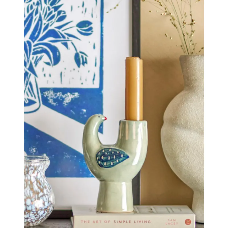 Ce porte-bougie chaleureux représente un oiseau et est fabriqué en grès avec un beau glacis dans des nuances de bleu. Comme une partie du porte-bougie est peinte à la main, des variations de couleur et d’intensité peuvent survenir, rendant chaque pièce unique. Placez-le sur une étagère, une table ou un rebord de fenêtre, où il peut apporter une touche personnelle à la pièce.
