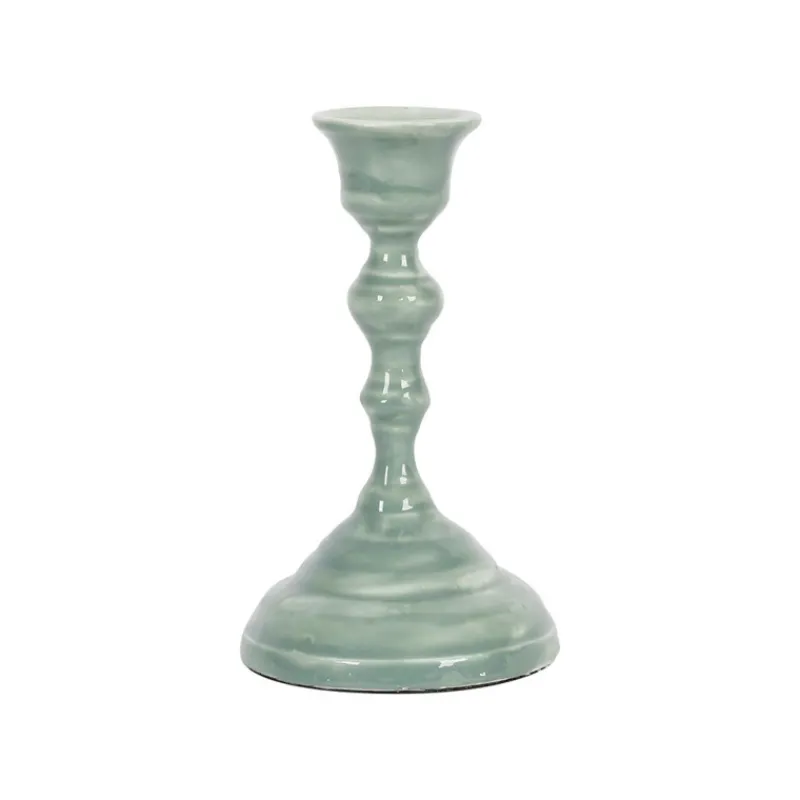 Ce Bougeoir émaillé Baroque Sauge de Côté Table ne passera pas inaperçu parmi votre décoration !
