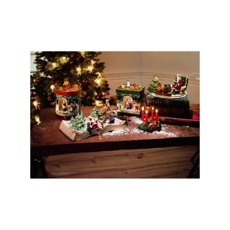 La magie de Noël tient souvent à peu de choses et les petites lumières qui scintillent dans le photophore Christmas Toys sur le thème de la distribution de cadeaux par Villeroy & Boch y contribue très simplement.