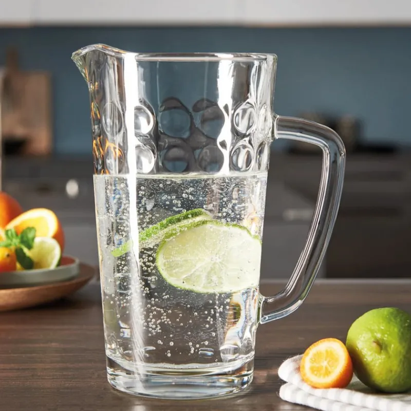 Grâce à l’effet d’optique des pastilles incrustées dans le verre, servir de l’eau ou des jus de fruits se fera en toute transparence et en toute élégance avec le pichet 1L Ciao Optic de Léonardo !