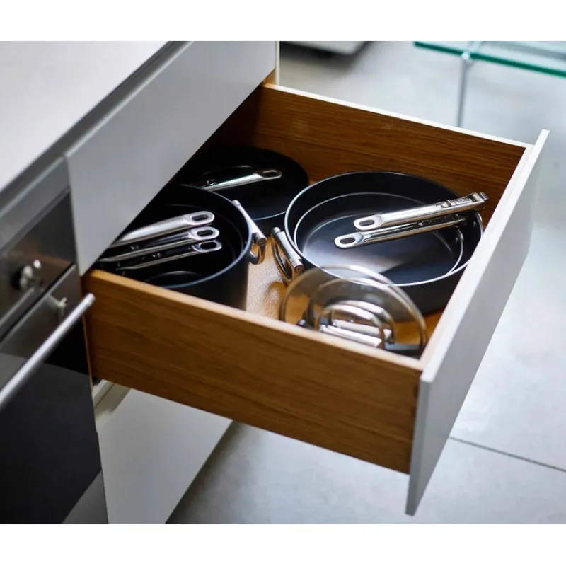- Permet d’économiser jusqu’à 50 % d’espace par rapport aux casseroles standards.