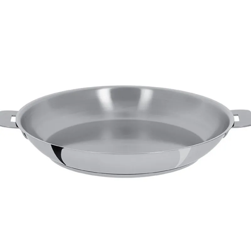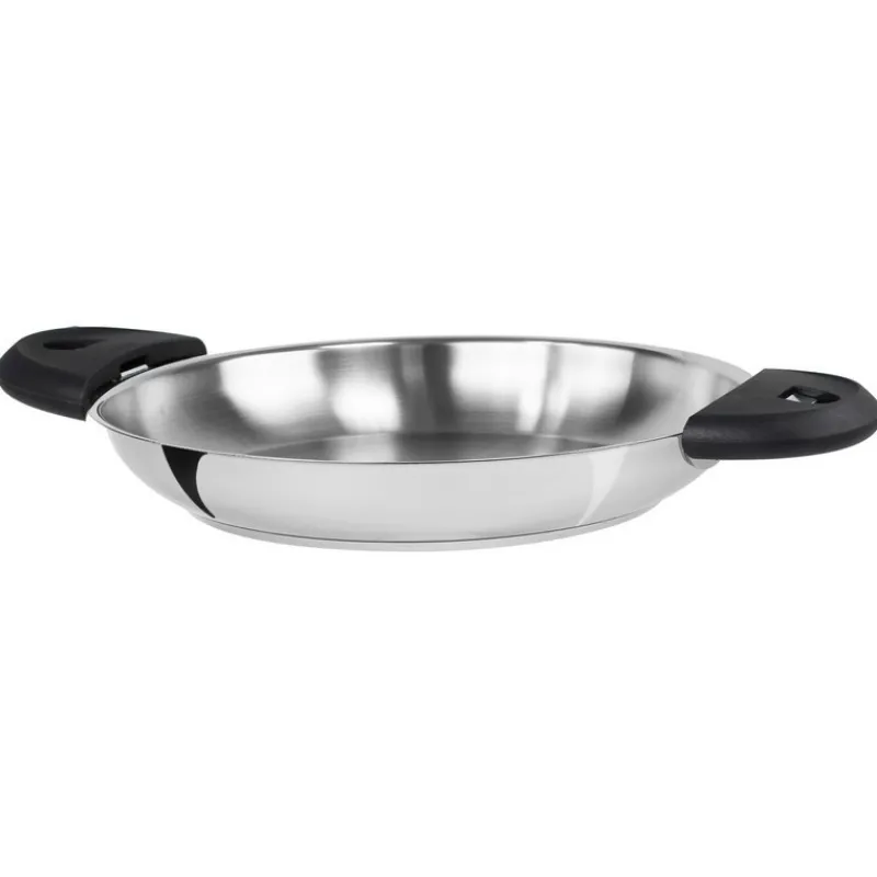 Cette poêle en inox est conçue de façon à être pratique au quotidien et efficace lors de la cuisson de vos aliments. Grâce à la qualité du fond thermo-diffuseur, vous pourrez saisir vos viandes, sans ajouter d’eau ou de graisse, ce qui vous permettra de pouvoir profiter pleinement des qualités gustatives de vos aliments.